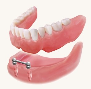 Een implantaat is een kunstwortel die als een schroef in de kaak wordt geplaatst. Om een kunstgebit goed te kunnen dragen zijn twee of vier implantaten nodig. De prothese wordt in de mond vastgeklikt op de implantaten. U kunt de prothese dus uitnemen om deze schoon te maken.