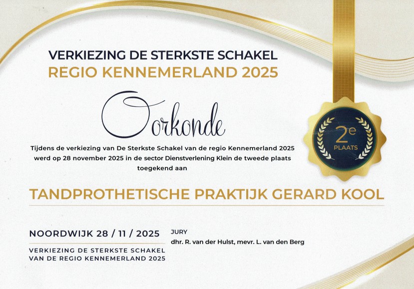 Zoals u eerder heeft kunnen lezen was Tandprothetische praktijk Gerard Kool genomineerd voor de Sterkste Schakel Verkiezing Kennemerland 2025.